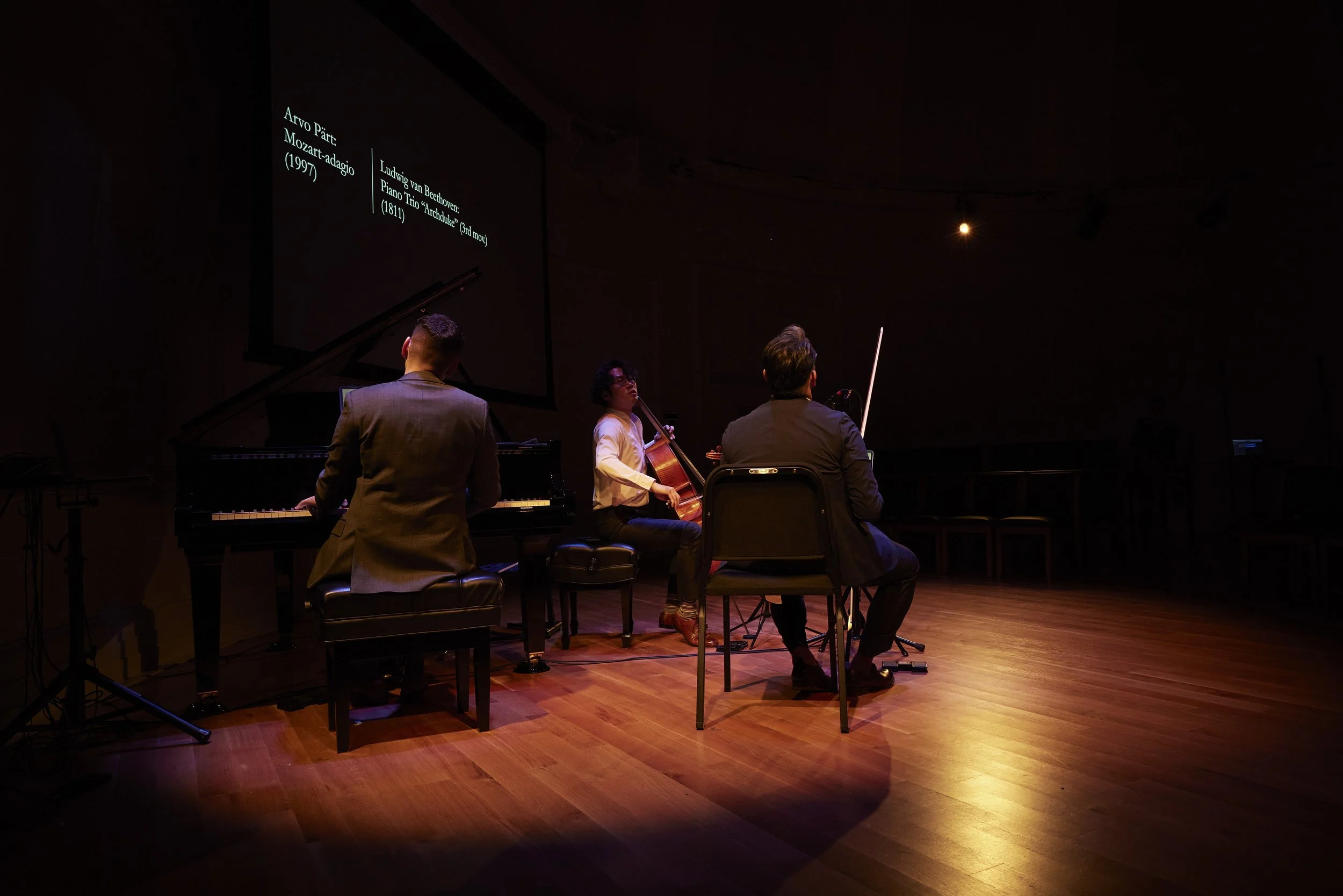 ‘Prosody’ is the idea of bringing alive a melody within an audience member. All three composers of this program embedded hymns in their music - which were, at the time, beloved and communal tunes. Ives’ jaunty, haunting piano trio embeds “Rock of Ages” and folk songs like “Sailor’s Hornpipe”, while Bach’s monumental Chaconne - newly arranged by Darshan’s pianist Dominic Cheli - embeds Lutheran hymns from Cantatas and Passions. Lastly, Mendelssohn’s towering Opus 66 trio quotes Bach’s own “Gelobet” from Cantata BWV 129.